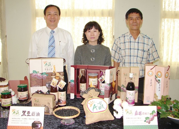 曾丁祥總幹事也一一介紹下營的特產,除了黑豆蔭油、蔭瓜、酵素洗髮乳沐浴乳,還有包括百分之百純蠶絲被、蠶絲胜太面模、桑椹原汁、桑椹醋、鵝肉貢丸及美味的米苔目等。