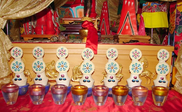 另外,金剛上師在灌頂之際,會將【多瑪】、【朵瑪】放在弟子頭頂,然後冥想、觀想為與本尊無二,即獲得息、增、懷、誅等成就。