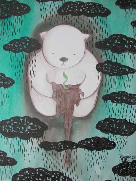 其中,這兩部作品將於四月十二日在台南崇德路的﹁活出美好-藝術家創作聯展﹂中同步放映,邱禹鳳老師也將於台南展覽中發表新的兒童插畫作品﹁黑雨將至﹂,這是以八幅插畫作品詮釋環保議題的兒童繪本故事,老狗熊父子擔心的一天終於來臨天空降下黏黏黑黑的髒雨,黏附油漬的魚群在湛藍的海中生命漸漸消亡,老狗熊終於決定到地極去找尋上帝要拯救下一世代所預備的那棵彩虹樹。